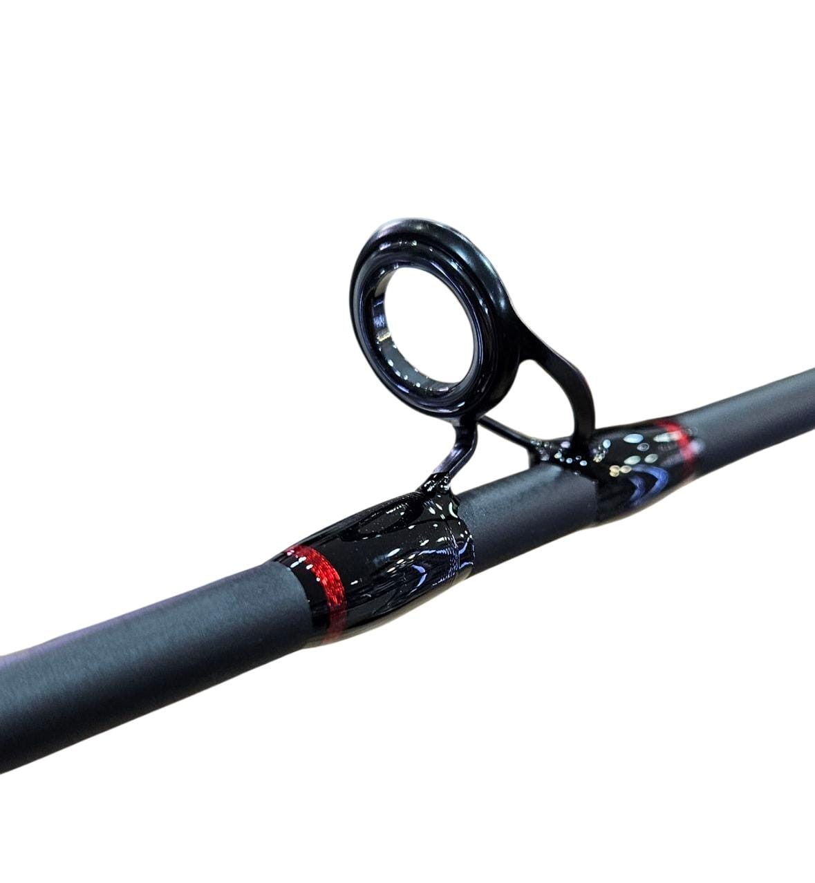 el resultado es una vara de acciones rápidas, punteras absolutamente sensibles a movimientos en el señuelo o línea, un mango de termo contraíble absolutamente atractivo y con un grip sensacional, y un blank de carbono de alto módulo que nos da tolerancias para usar la caña ya sea para señuelos, chispas o para la pesca de lenguado con pejerey!