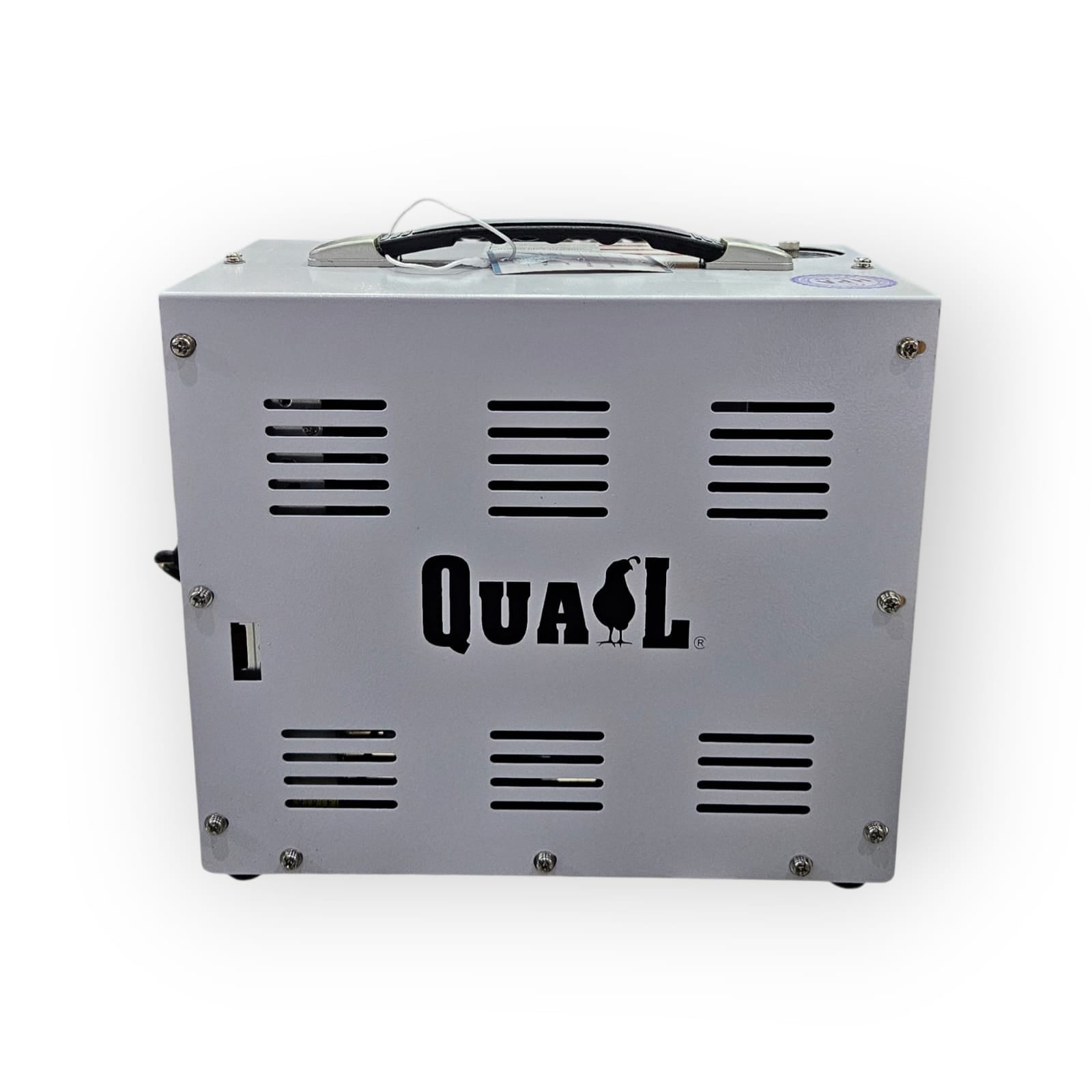 El compresor portatil Quail, Potente y eficiente, a diferencia de otros compresores, el tanque de aire está equipado con un potente motor que ofrece hasta 350 W de potencia , funcionando a 12volt o 220volt. con una presión de inflado de 4500 PSI/300 Bar/30Mpa, este compresor puede cumplir con los requisitos de presión de aire de la mayoría de las pistolas de aire. Infla un tanque de 500 CC de 200 BARS a 300 BARS en solo 8 minutos.