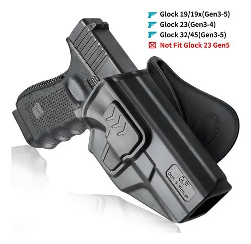 - 【Mano de obra fina】Hecha de plástico resistente a bajas y altas temperaturas. Diseñada para entrenamiento táctico, caza, uso militar, campo de tiro, fuerzas del orden, defensa personal, porte diario y porte abierto de cualquier tipo. Esta funda se adapta a cinturones de 3,8 cm, 4,4 cm y 5 cm de ancho. La paleta se ajusta 360 grados para adaptarse a cualquier posición de porte.