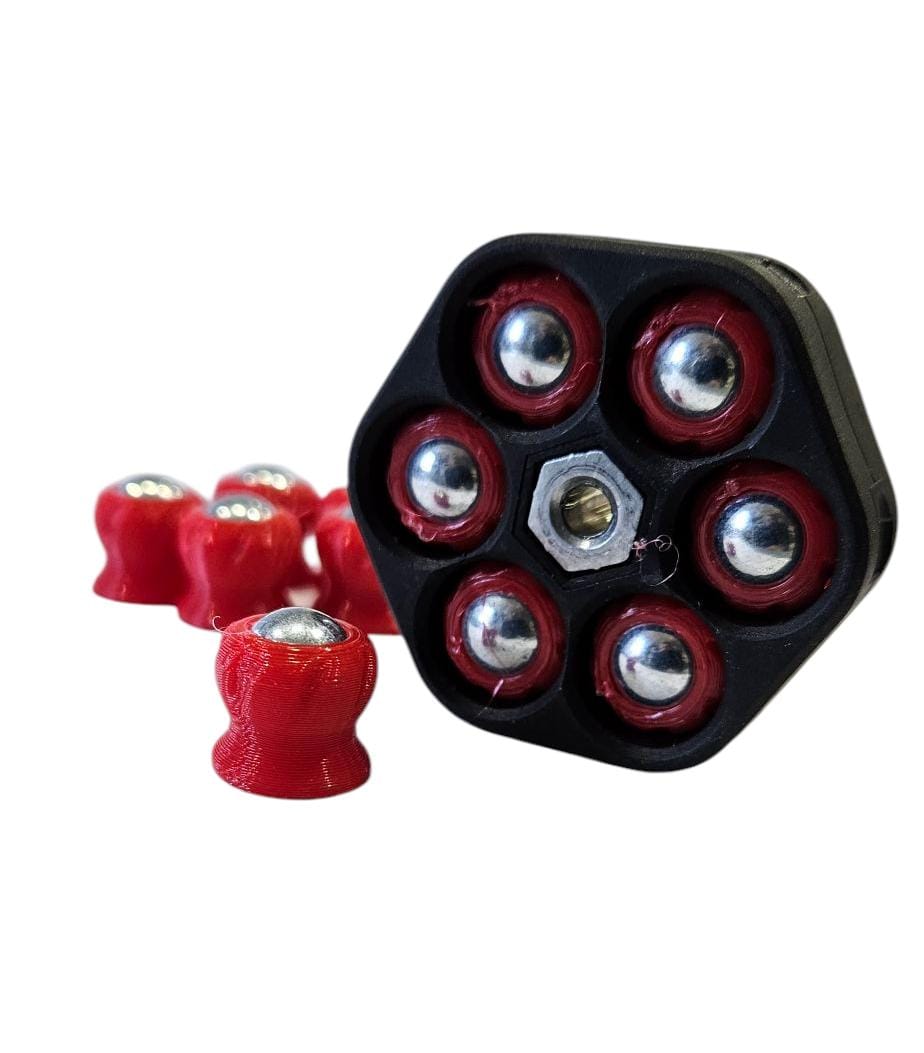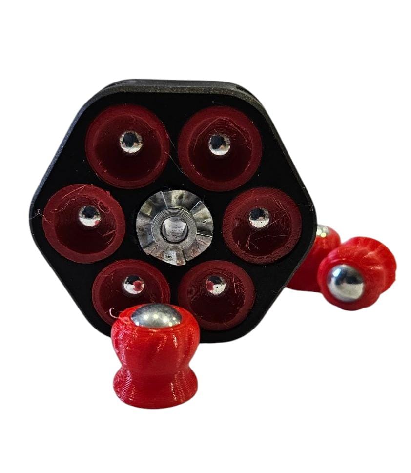 Fabricado con filamento PLA en maquina 3D y un balín de acero macizó.