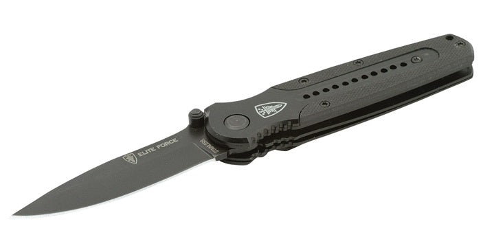 La navaja Elite Force, es un modelo compacto de una sola mano, con una hoja de acero inoxidable 420 que se maneja con el botón de apertura en ambos lados y un sistema de bloqueo de forro, que incluye un clip de acero inoxidable para el cinturón.