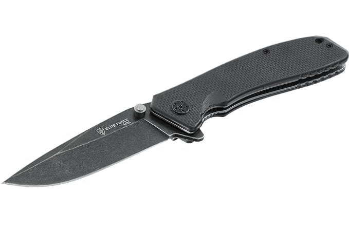 La navaja Elite Force modelo EF 133 con un aspecto vintage, incorpora una hoja de punta negra con un acabado de lavado a la piedra y empavonada, dandole ese toque rustico y envejesido.