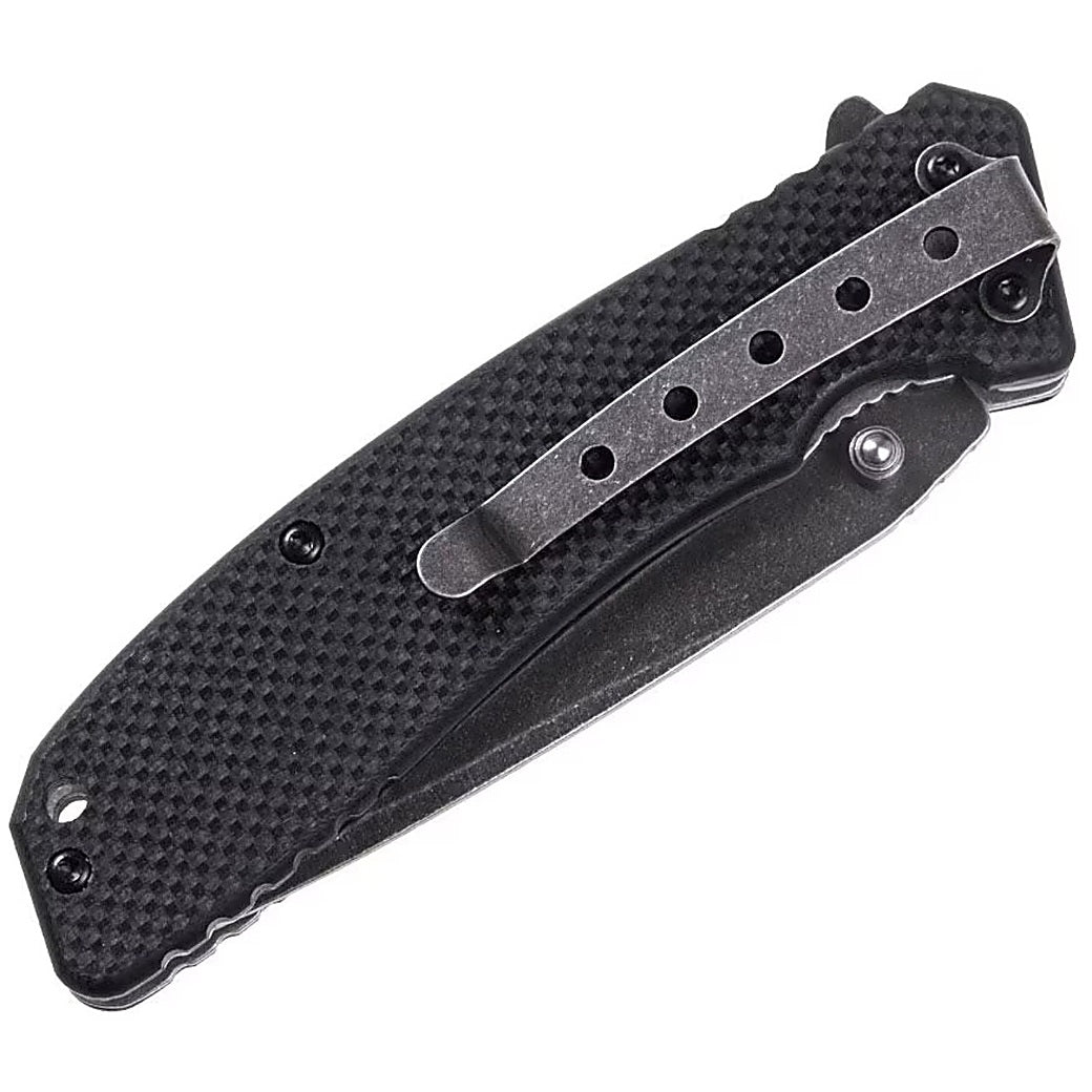 Las escalas negras del mango de polimero G10 estan atornilladas, el clip de sujesion se puede quitar.