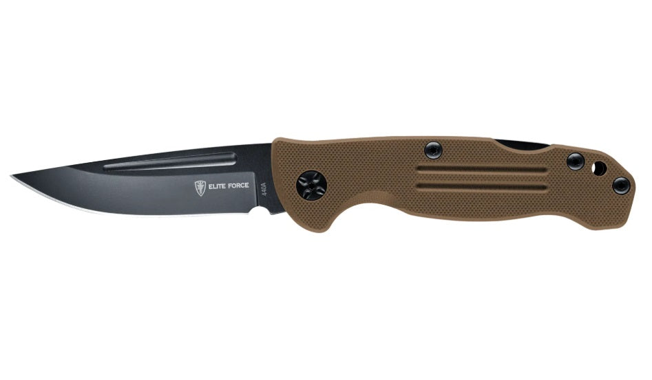 La navaja tactica Elite force EF 165 cuenta con un mango macizo de G10, fresado en color Marrón Coyote, que ofrece una excelente ergonomía y un alto nivel de comodidad.