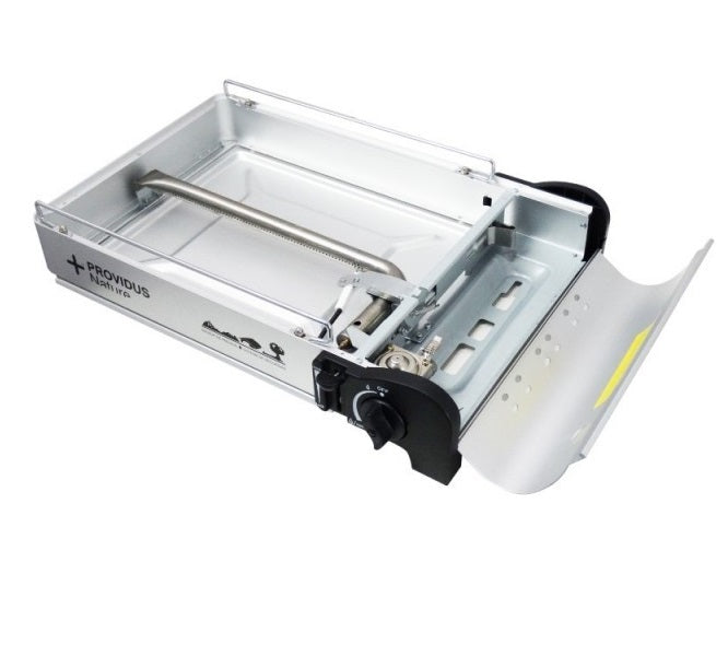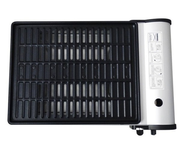 Posee una parrilla removible antiadherente de fácil limpieza y también una parrilla inferior para la retención de líquidos y grasas que también es muy fácil de limpiar.Su sistema de seguridad le permite asegurar que la conexión o desconexión del cartucho de gas sea segura y si problemas.