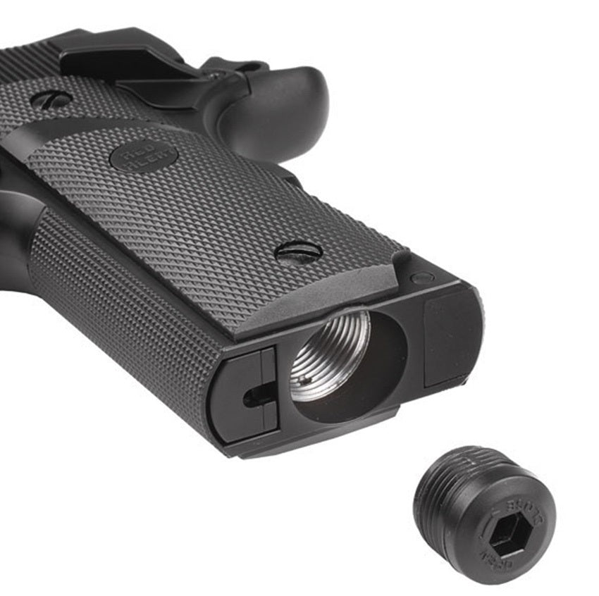 La Red Alert 1911 es una pistola semiautomática de aire comprimido que combina diseño clásico y funcionalidad moderna.