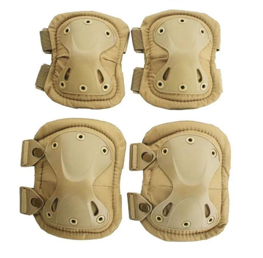 Set de rodillera y coderas táctico en color coyote, están diseñadas para ofrecer una protección superior en actividades que requieren resistencia y movilidad.